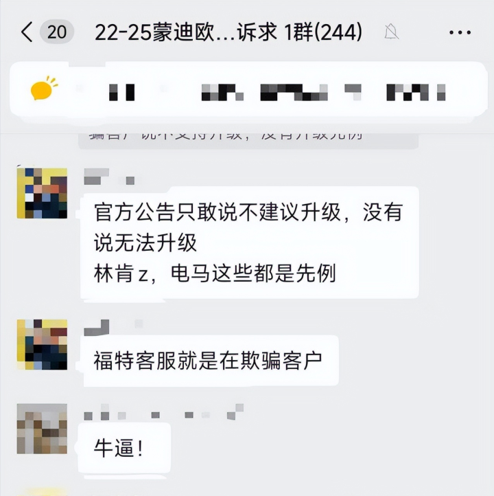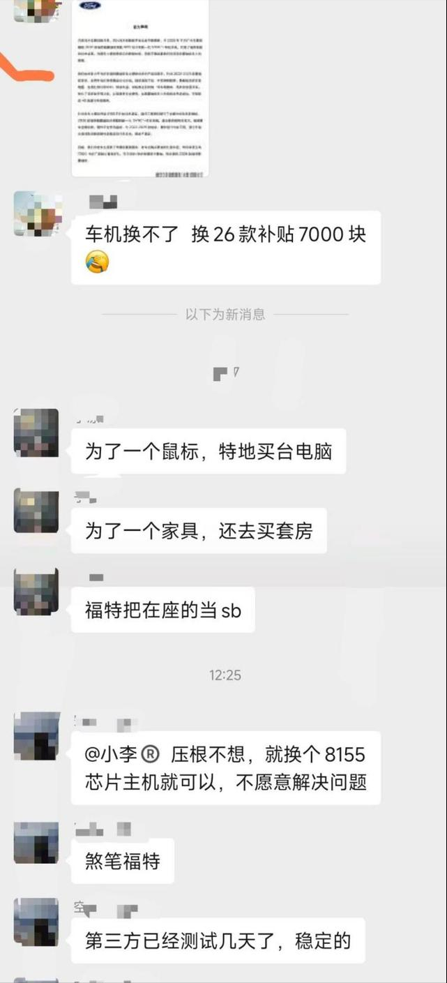 新车已经升级成8155,结果老车还在用820A,车机卡成PPT,于是福特车主提出维权,要求更换车机芯片。